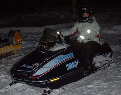 Of course I couldn't let Angie have all the blue sled fun for herself. I've since picked up a 1980 Polaris Centurion which is the 500cc 3 cylinder version of this sled. In the very soft snow of early 2005